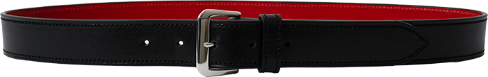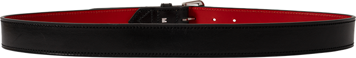 A slimline belt (width 3.2 cm) made to Lewis Leathers exacting specifications, with fine-grain black leather front side and red on the reverse, this classic item is fitted with a replica of the belt buckle used on the Irvin flying jacket, worn by RAF pilots and sold by D. Lewis after WWII. The buckle itself is of traditional construction and made from solid brass with nickel-plate to avoid corrosion. The Aviakit stamp on the back acts as confirmation of authenticity. As expected, this fine piece of leatherwork is made in England and exclusive to Lewis Leathers.