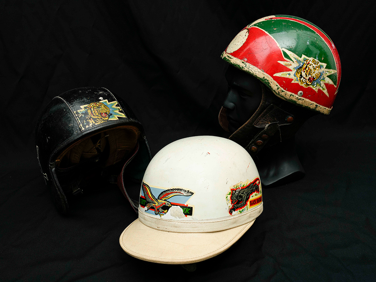 The maker was Slick Transfers / Slik Stikkas, who still held the original artworks seen here – but are now exclusive to Lewis Leathers. These are the graphics used on period helmets in the Lewis Leathers Archive and can be seen in Sydney J. Furie's 1964 classic The Leather Boys.